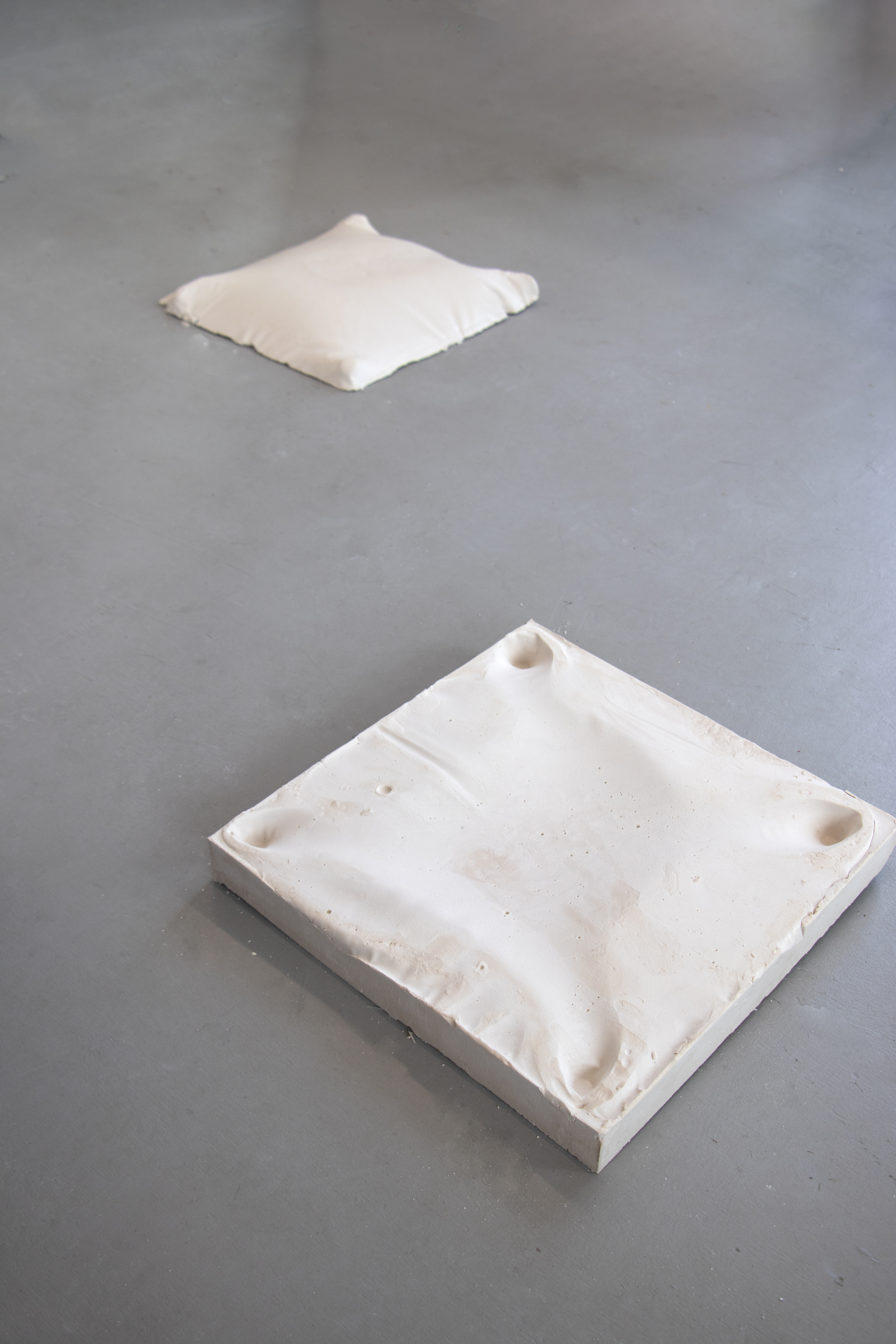 MATERIALS: 40 x 40 x 10 cm plaster tile, various objects